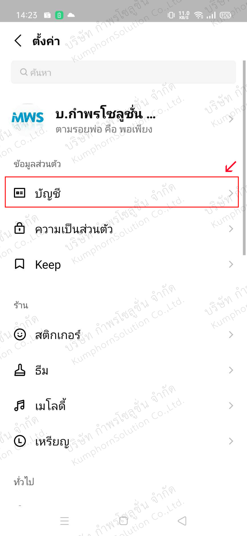 - 1. เลือกที่บัญชี ตามรูปด้านซ้าย