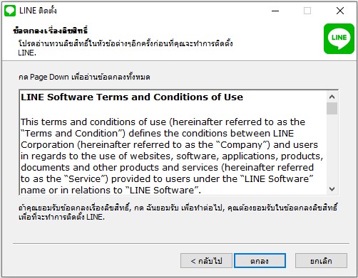 หมายเหตุ การใช้งานและหน้าจอการติดตั้งอาจเปลี่ยนไปตามแต่ล่ะ version ของ LINE PC หรือ ข้อตกลงการให้บริการของ LINE PC ควรทำตามคำแนะนำที่ทาง LINE PC แนะนำ